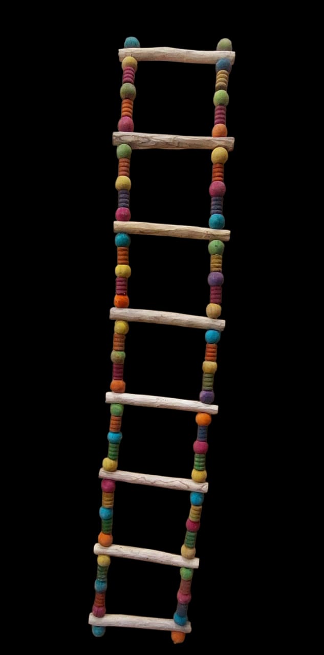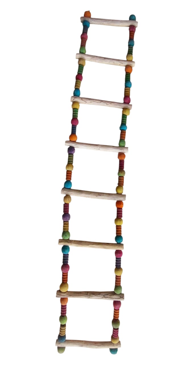 Parrot Leader made from natural wood with smooth beads byed using safe, food grade colors. Durable, bird friendly, and perfect for climbing, playing, entertainment. Great for parrots of all sizes who love natural textures and interactive toys.